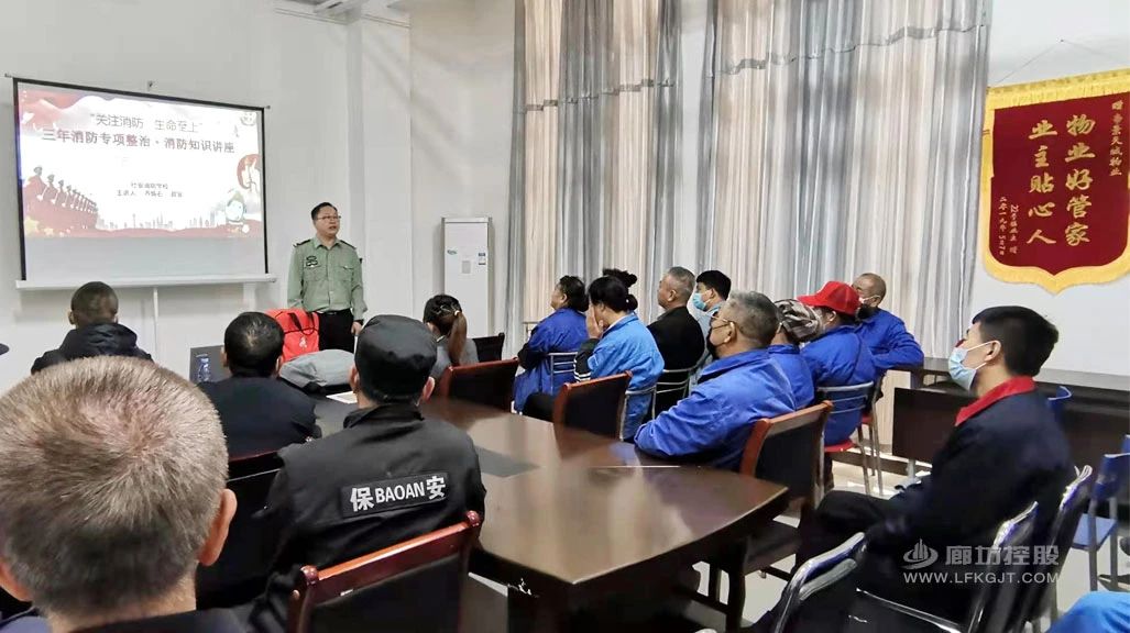 4月9日下午,凯富物业公司邀请社安中心培训教官乔烁石为物业公司员工开展消防安全知识培训,来自物业一线的保洁、保安、维修等人员共计35人参加活动。