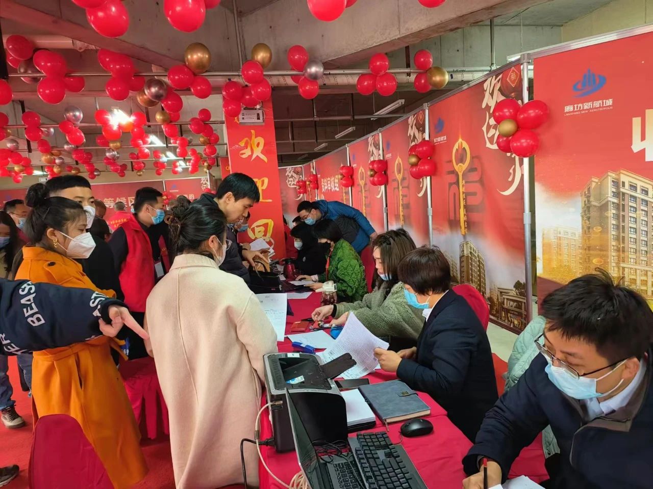 2023年3月20日上午,伴随着喜气洋洋的音乐,北京新机场(廊坊区域)回迁安置区新航佳苑五区的交房工作顺利拉开大幕,正式迎接回迁居民办理入住。北京新机场(廊坊区域)回迁安置区项目——新航佳苑小区是支持北京新机场建设的配套工程、民生工程,从村庄征迁到安置工程建设,是全市高起点规划、高标准建设,全力打造居民满意的回迁安置精品工程。主要涉及12个村街共计2008户,7983名村民。回迁安置区项目(一期)安置房规划总建筑面积106.63万平米,共计回迁安置房111栋,幼儿园4栋,容积率为1.47,总套数共计5715套,是廊坊临空经济区域首个实现回迁的建设项目。