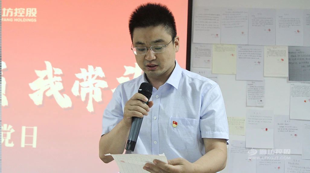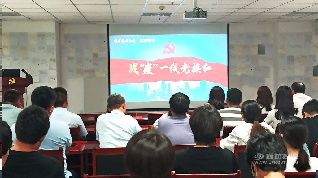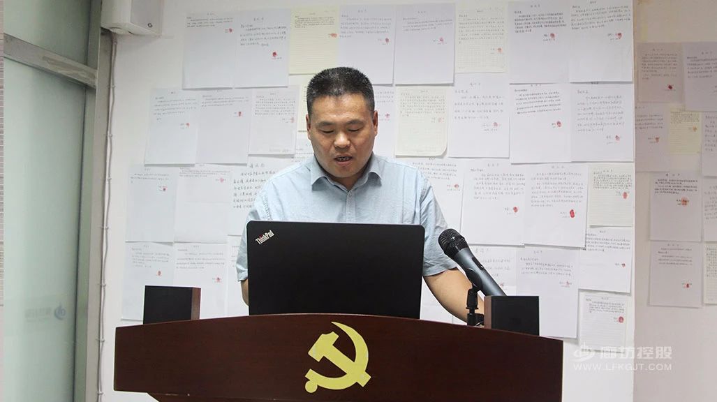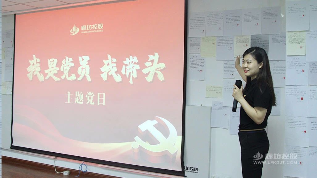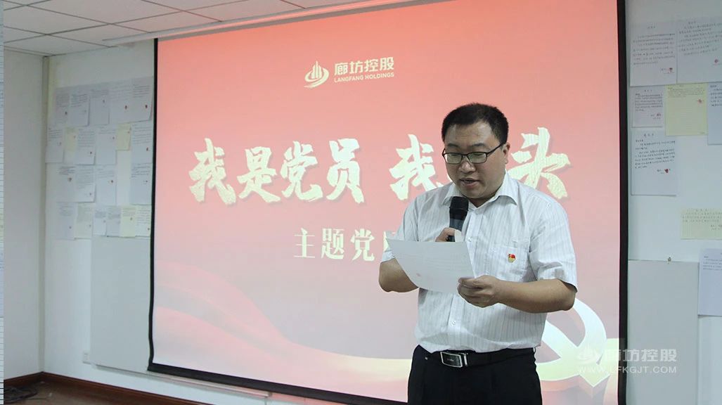影片观看后,集团党委对疫情初期的一线防控工作进行了总结回顾,播放了“飘扬的旗帜——疫情防控,廊坊控股在行动”的微视频,抗疫先进个人王镜晶、刘化彪、班秀萍、赵亮宣读了自己的请战书,分享了自己的战役故事,现场的党员们也纷纷主动申请分享自己的请战书,会场的氛围瞬间升华,感动的让不少同志潸然泪下。“我是党员,我带头!”口号一次次响彻会场。