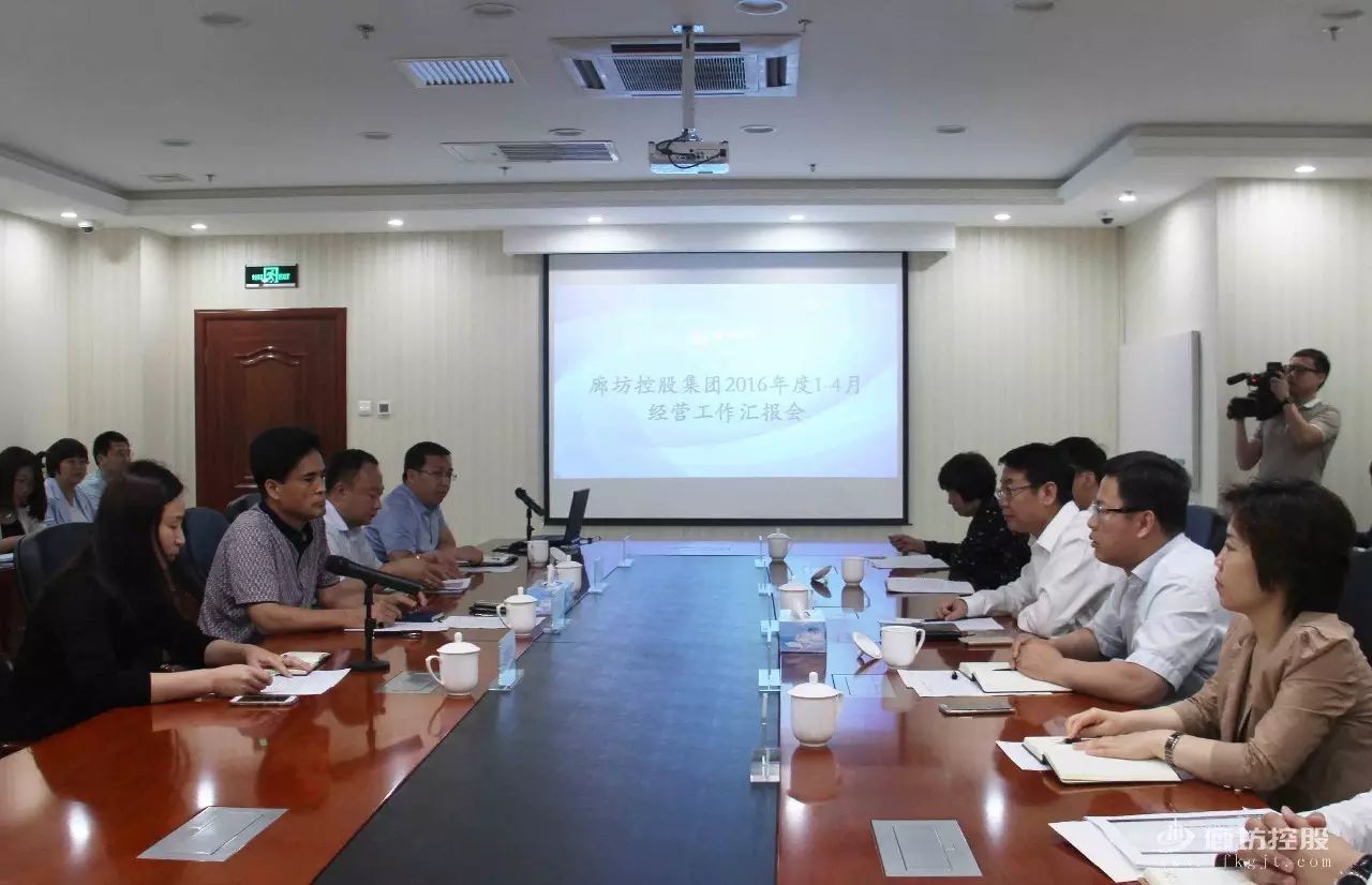5月13日,廊坊控股集团召开2016年度1-4月份经营计划汇报会。集团党委书记、董事长王海滨出席会议并讲话,集团总经理白殿成、集团经营领导班子全体成员、集团公司各部室负责人、各成员公司班子成员共43人参加会议。