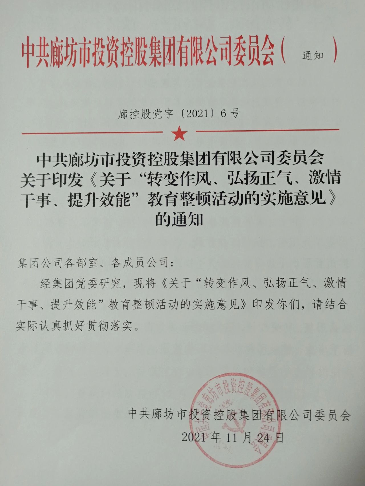 廊坊控股集团启动“转变作风、弘扬正气、激情干事、提升效能”教育整顿活动