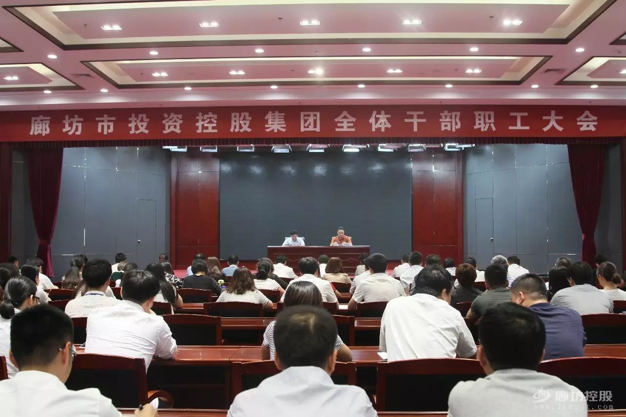 图注:廊坊市投资控股集团全体干部职工大会在天都酒店天香阁四楼报告厅举行。
